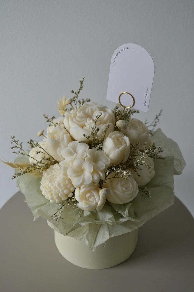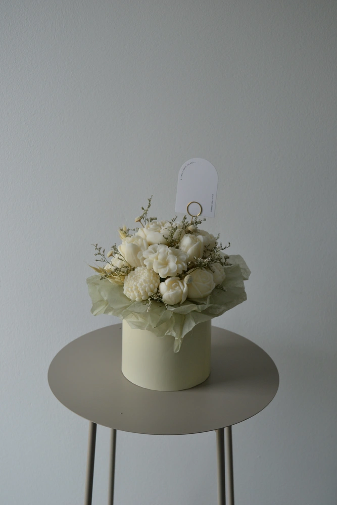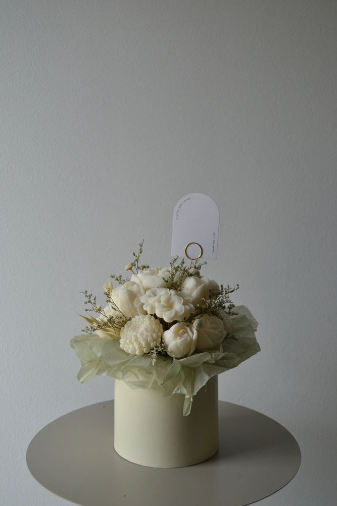 DARUJ RADOSŤ, KTORÁ VYDRŽÍ OVEĽA DHLŠIE AKO KVETY. jedinečný box ktorý nikdy nezvädne! ručne vyrábané sójové sviečky sú naaranžované do elegantného boxu tak, aby pripomínal kvetinovú výzdobu. každý kúsok je originál, vytvorený s dôrazom na čisté zloženie a harmóniu farieb.