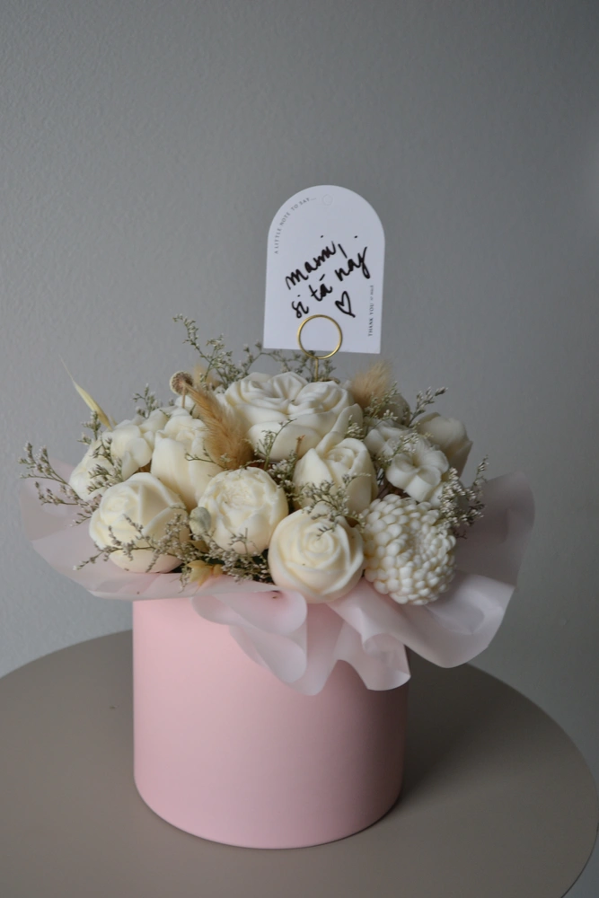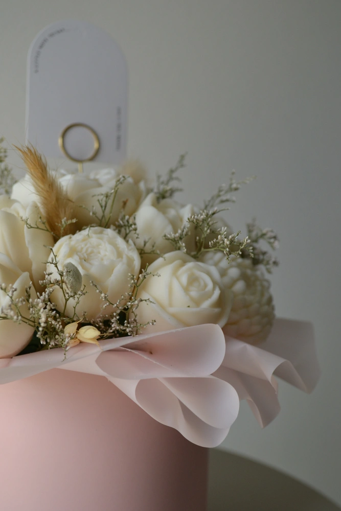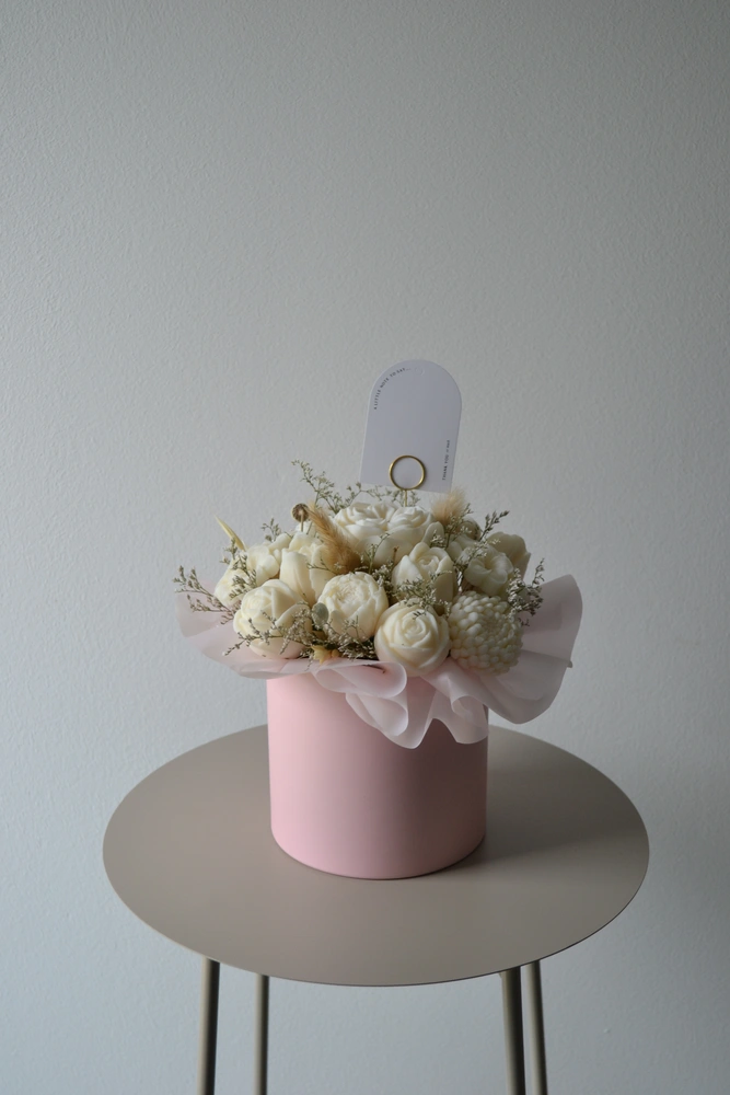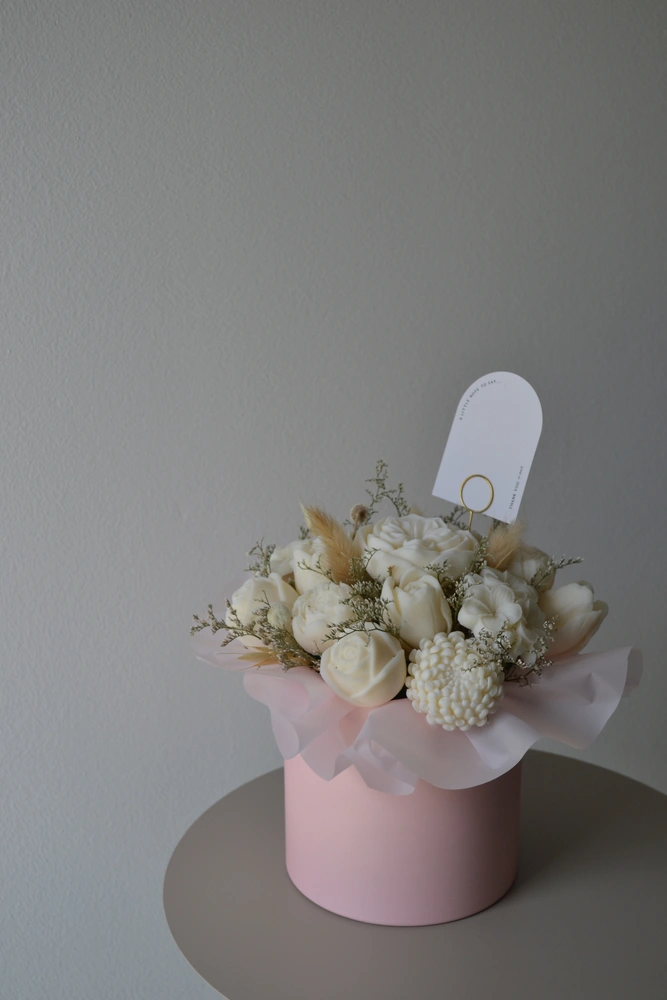 DARUJ RADOSŤ, KTORÁ VYDRŽÍ OVEĽA DHLŠIE AKO KVETY. jedinečný box ktorý nikdy nezvädne! ručne vyrábané sójové sviečky sú naaranžované do elegantného boxu tak, aby pripomínal kvetinovú výzdobu. každý kúsok je originál, vytvorený s dôrazom na čisté zloženie a harmóniu farieb.