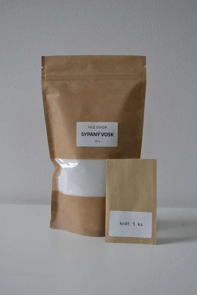 sypaný vosk je ekologický a vzhľadom pripomínajúci piesok či malé perličky. preto sa mu hovorí aj perličkový vosk. je prirodzene bielej farby. po pridaní esenciálneho či vonného oleja, sa znej stane sviečka, ktorá rozvonia váš domov. voskové perličky horia čisto a rovnomerne, pričom nevyužitý vosk môžete jednoducho použiť znova.