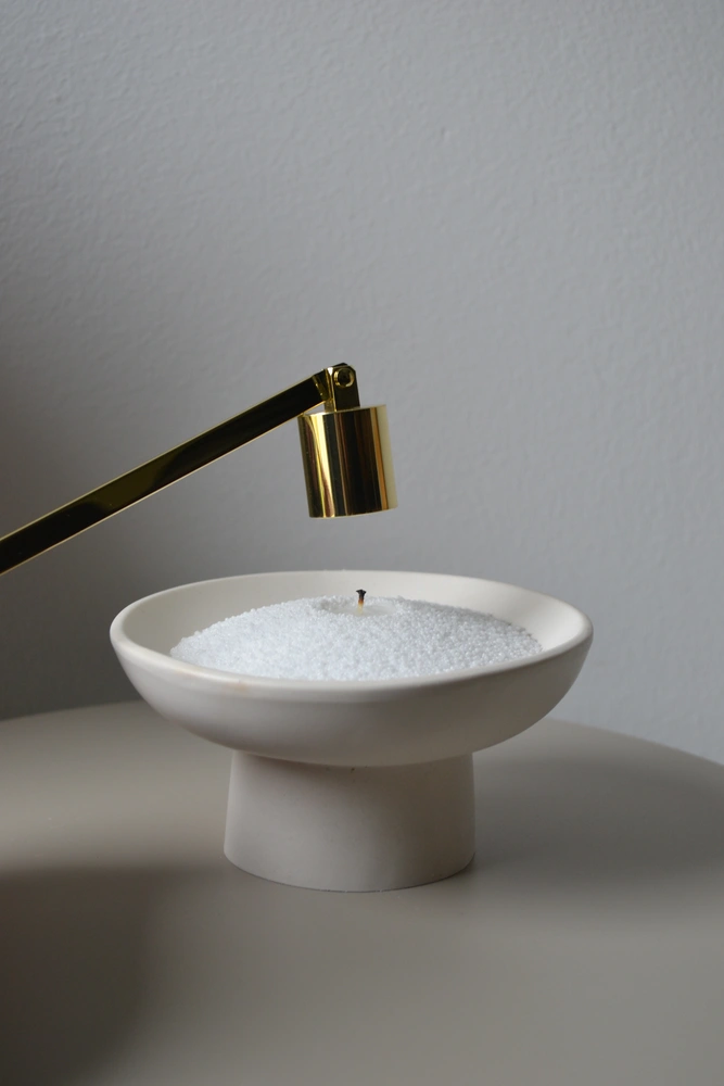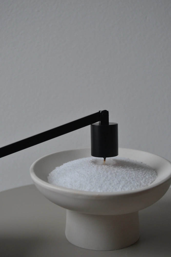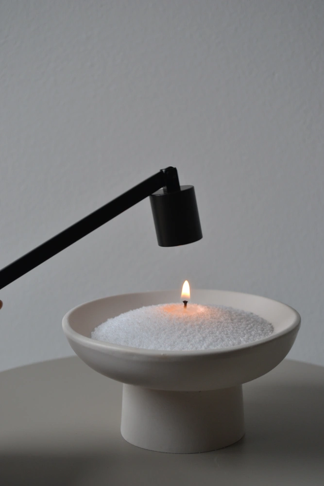 moderný zhášač sviečok slúži na rýchle a bezpečné uhasenie plameňa bez dymu. výhoda oproti sfúknutiu sviečky je, že vosk neprská, nevzniká a dym, sviečka sa neušpiní a knôt zostáva v lepšom stave. použitie je jednoduché; stačí priložiť klobúčik priamo nad plameň sviečky. jemne ho spustite tak, aby plameň zakryl. plameň zhasne bez dymu a rozstreku vosku.