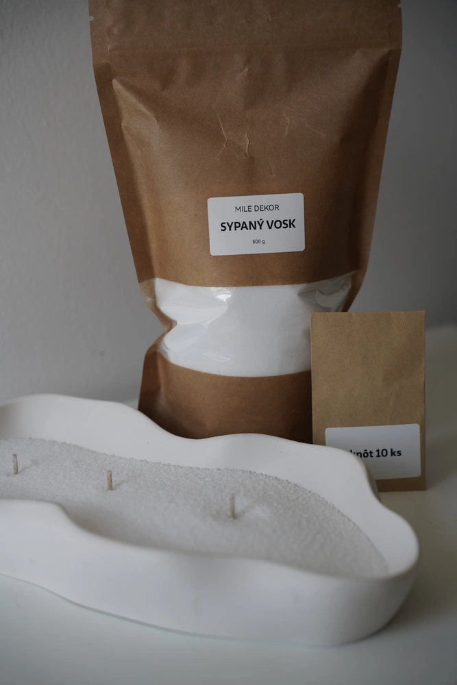 1. nasypte do nádoby vrstvu perličiek, odporúčame nasypať minimálne 3 cm vrstvu vosku.